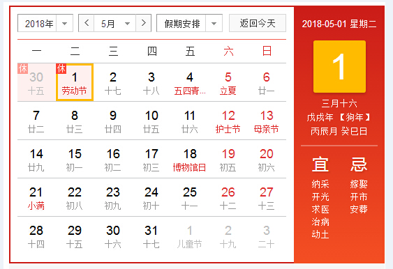 4月29日(星期天)至5月1日(勞動(dòng)節(jié),星期二)放假調(diào)休,共3天。